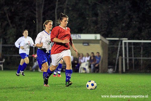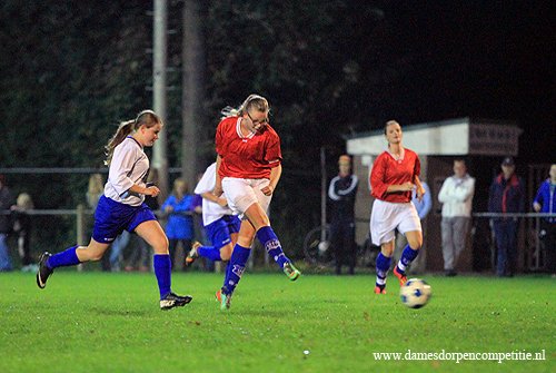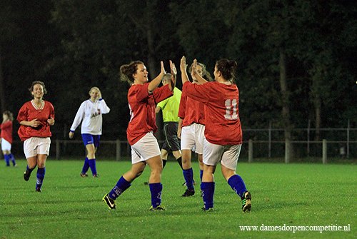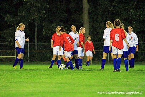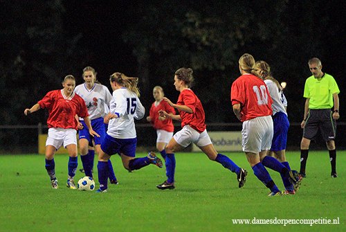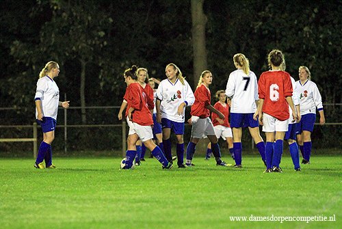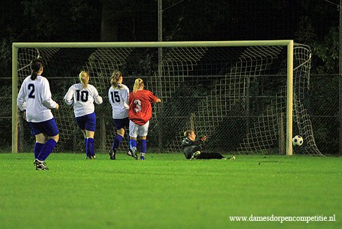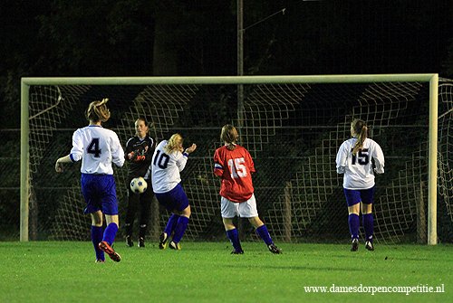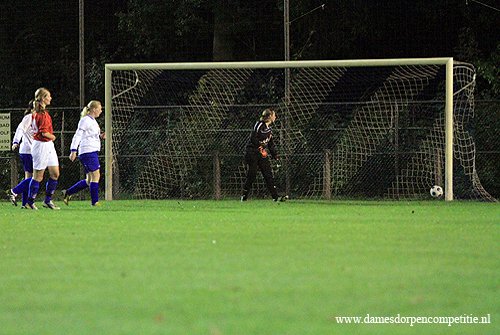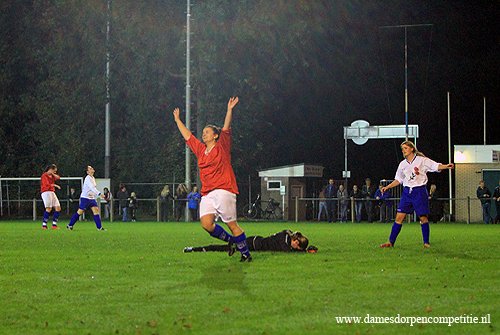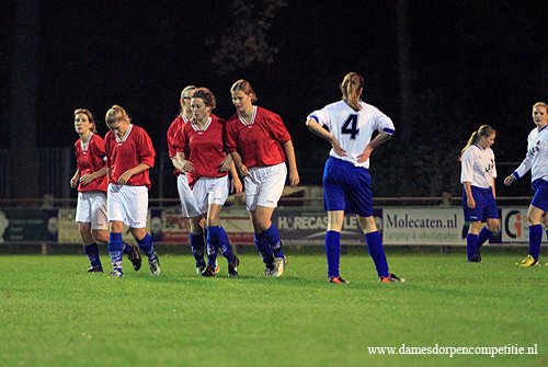 Scoreverloop: Miranda Ekas (8′) 1-0, Samantha Kool (9′) 2-0, Samantha Kool (10′) 3-0, Denise Zwier (12′) 4-0, Samantha Kool (22′) 5-0, Denise Zwier (30′) 6-0, Melissa Zijlstra (32′) 7-0, Samantha Kool (32′) 8-0, Samantha Kool (36′) 9-0, Deborah Rozema (39′) 10-0, Melissa Zijlstra (49′) 11-0, Deborah Rozema (52′) (p) 12-0, Melissa Zijlstra (55′) 13-0, Joanne Marinus (62′) 14-0, Joanne Marinus (65′) 15-0, Joanne Marinus (68′) 16-0, Joanne Marinus (72′) 17-0, Dirni Klaver (77′) 18-0, Miranda Ekas (81′) 19-0, Miranda Ekas (85′) 20-0, Denise Zwier (86′) 21-0.